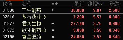 上证报中国证券网讯(李子健记者周亮)10月16日,港股抗肿瘤板块持续走强。其中,三生制药一度涨超9%、基石药业-B涨超5%、君实生物、歌礼制药-B、复星医药涨超3%。消息面上,2025年欧洲肿瘤内科学会(ESMO)年会定于10月17日至10月21日在德国柏林举行,作为全球肿瘤学领域的顶级盛会,此次会议预计将汇集多项重磅临床研究成果。