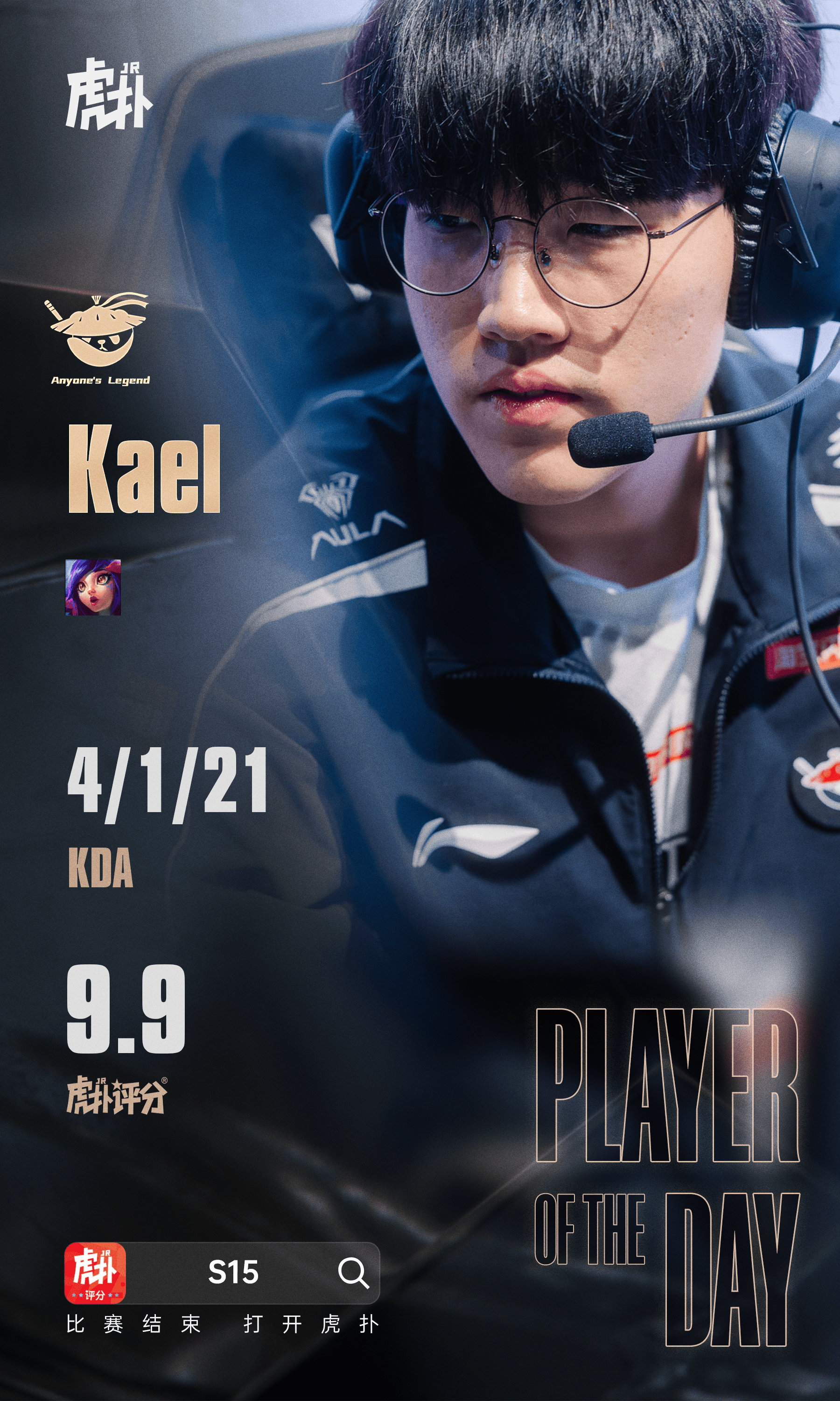 其中Kael选手表现出色,经过JRs的评选后荣获昨日最佳选手。