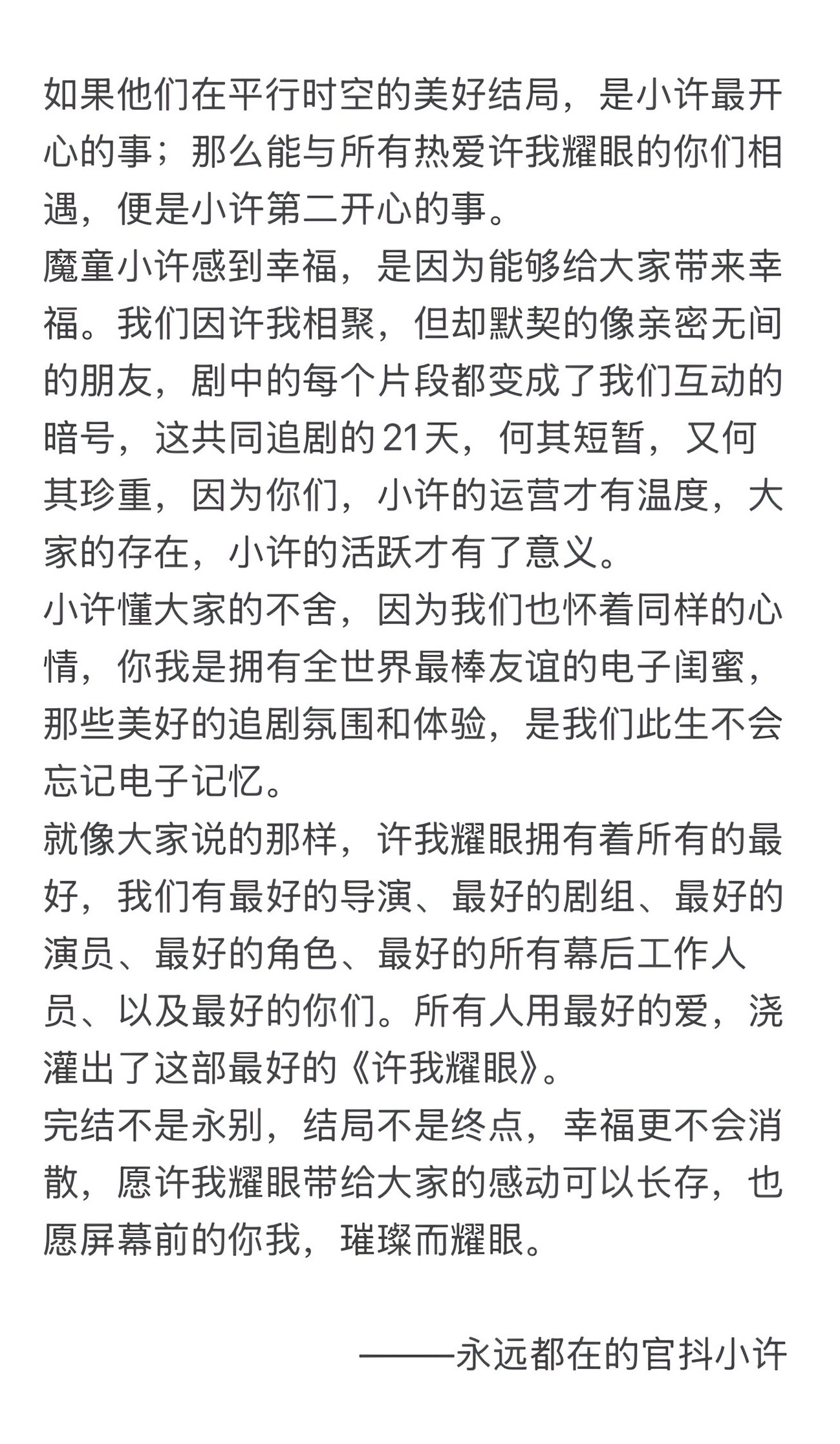 天呢,小许发了收官小作文[泪][泪][泪]小许的收官小作文许我耀眼官方收官小作文
