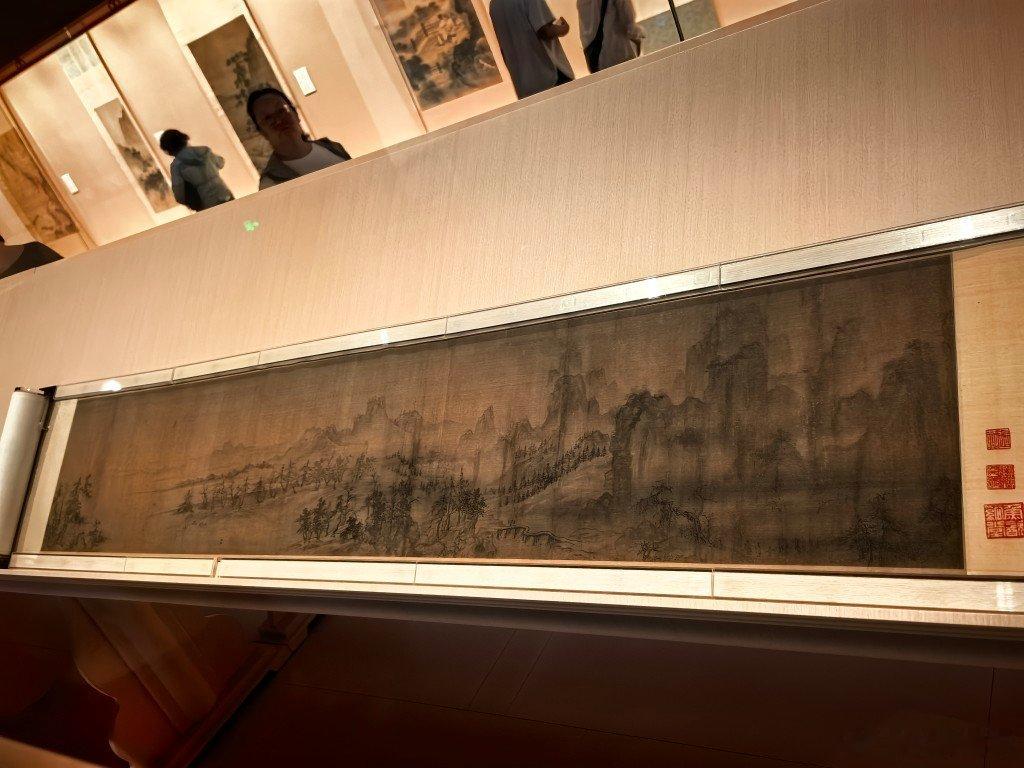 谢稚柳捐的北宋王诜的《烟江叠嶂图》当年也是入过宣和画谱的。可惜后面苏轼的题跋没有展开。绘画馆文徵明画的雪景很妙,画山的笔法相对唐伯虎的,我更喜欢小文的。