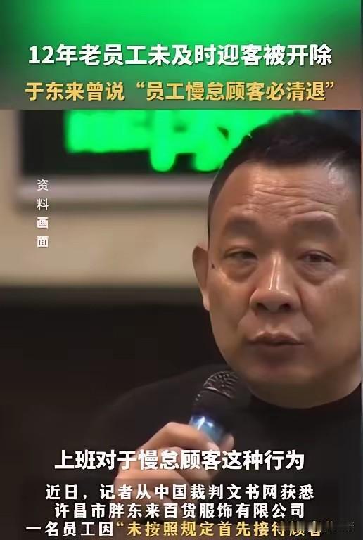 胖东来员工被解雇,是在4年前,怎么现在才曝出?于东来真的是要接力,西贝的热搜榜吗? 据大象新/闻, 刘某,是胖东来12年工龄的老员工,当时正在手持POS机,上货,顾客自己挑选服饰,并没有询问刘某任何问题! 但是被公司发现,并被炒鱿鱼! 事后刘某不服,于东来直接“0赔偿”,因为公司有规定,“没有第一时间接待顾客!”刘某12年老员工了,当时这项规定,她是签了字的! 看来都说胖东来薪酬高,福利待遇好,都是和业绩挂钩的,难怪以前杀鱼的小姐姐不干了, 高压力,高强度,也不是每个人能接受的了的吧?