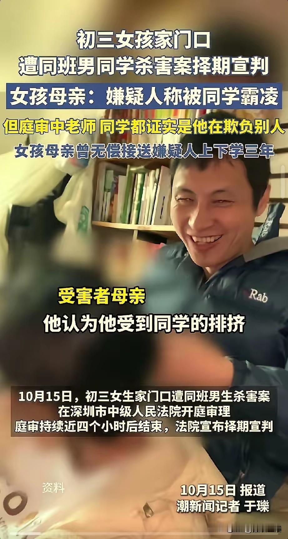 深圳被害女孩的爸爸,48岁了,每天抱着女儿的衣服才能入睡,他不敢出庭,真的后悔,当天只是把女儿和凶/手送到大门口,有事便离开了,如果他陪着女儿一起上楼,或许就不会发生! 女孩妈妈面容憔悴,头上白发丛生,几个月苍老了许多! 她说,当时去认女儿,怕自己承受不了,是孩子爸爸去的, 看到乖巧的女儿,那么冰冷的躺在那里,脖子上身上都有伤口,他太伤心了,根本接受不了女儿走了! 34岁上才有了宝贝女儿,上初中,为了女儿的安/全,他和陈爸爸轮流开车,接送3个孩子(包括凶/手男孩)上下学,怎么也没想到,自己这样保护女儿,却被身边这个,免费接了3年的男孩,这么伤害! 事情过去半年来,女孩妈妈和爸爸各自沉浸在痛苦中,很少交流,都怕说出去哪句话,就能勾起对女儿的思念, 最可恨的是,男孩一家人都没有任何,道歉,直到要判死,男孩才当场磕头求原谅! 这让这一对父母很是难受,“他考虑过给我们的女儿,一点活路吗? 孩子呼救,男孩又回来补刀,太残忍了啊?” 一个年仅15岁的男孩,怎么能下得去手? 女孩家长不会原谅,任谁都不会?!