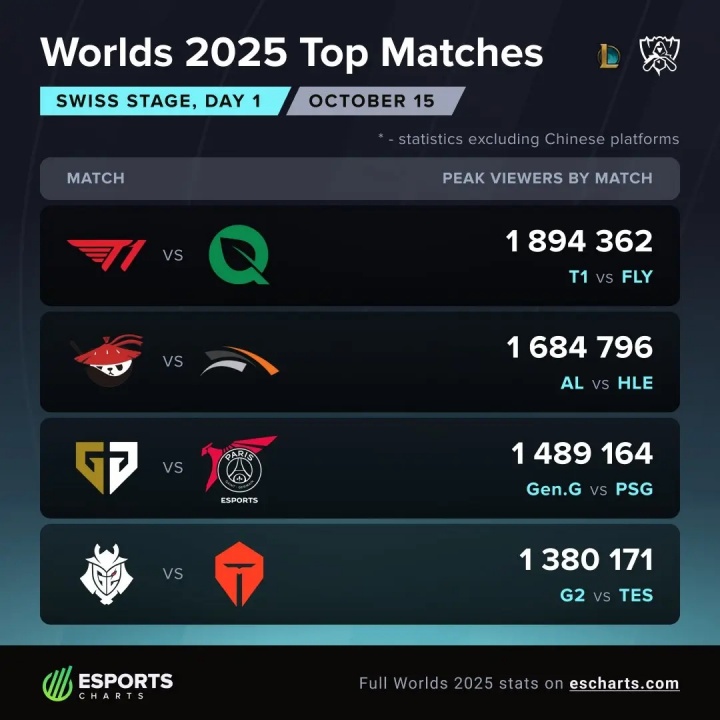 瑞士轮首日外网收视率统计:T1昨日以190万收看人次遥遥领先!