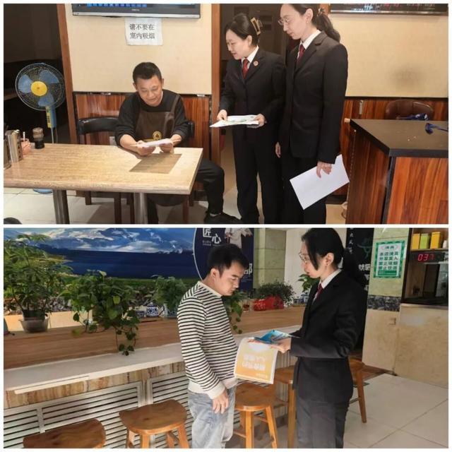 在餐饮集中区域,宣传分队精准聚焦经营主体与就餐人员两类群体。一方面,向餐饮经营者发放《餐饮行业节约指引》,对照法律规定逐项检查反食品浪费标识张贴、点餐提示服务等落实情况;另一方面,向经营者明确“主动提示适量点餐”的法定义务,督促其切实履行主体责任,从源头减少餐饮环节浪费。