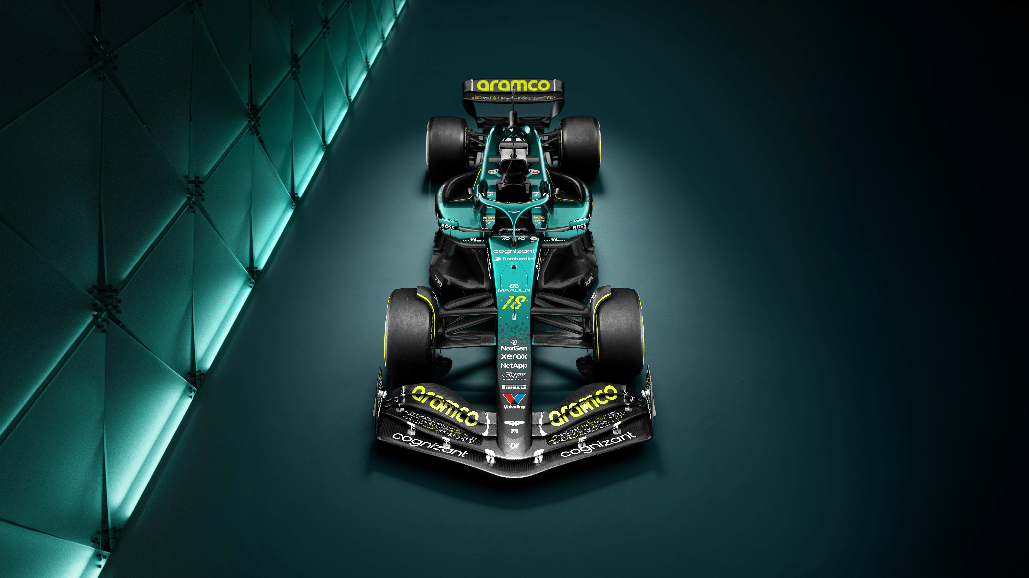 费尔南多-阿隆索和二级方程式车手杰克-克劳福德在冠名赞助商阿美公司位于休斯顿的美国总部共同发布了这款引人注目的涂装。该涂装通过融入一系列技术公式,生动展现了F1背后的科学奥秘。