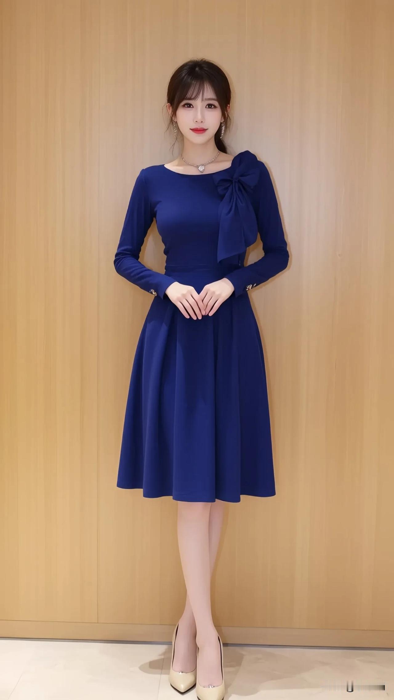 优雅蓝调连衣裙,甜美蝴蝶结,气质满满!性感甜美集一身 迷人姐姐分享 迷人女神魅力放 分享迷人的佳丽