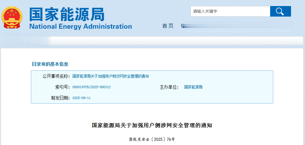 光伏头条获悉,10月16日,国家能源局发布《关于加强用户侧涉网安全管理的通知》。