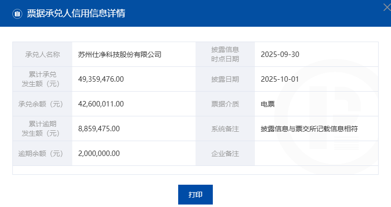 仕净科技主营业务是制程污染防控设备、末端污染治理设备的研发、生产和销售。对此次票据逾期的原因,财闻邮件询问了仕净科技方面,截至发稿未能得到回复。