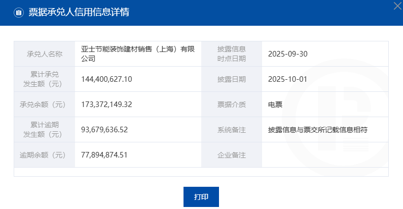 亚士创能一家子公司截至9月末的票据逾期情况,