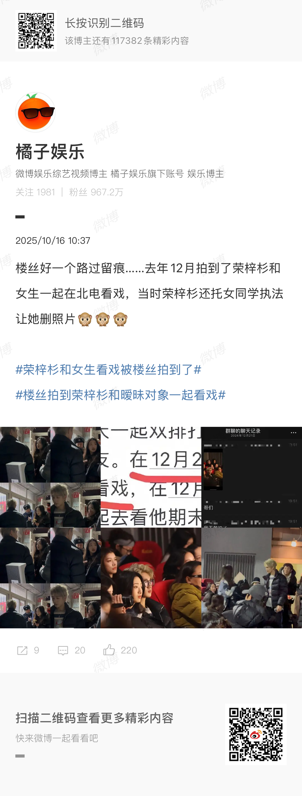 今天上午,荣梓杉还被爆出去年12月和女生一起在北电看戏的图,也和女生的爆料对上了(p9)