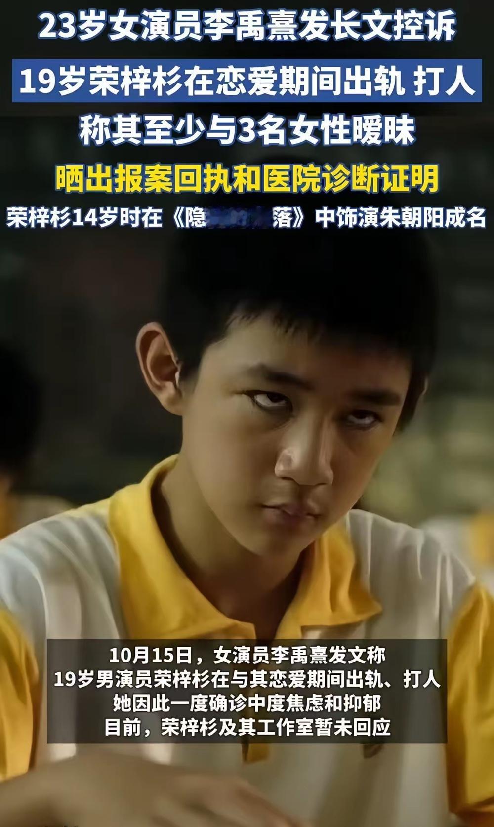 19岁荣梓杉塌房!别拿“三白眼”说事,人品才是真滤镜 老辈说“远离三白眼的人”,可荣梓杉塌房,真不是眼神的锅——19岁的他,恋爱期间出轨、打人,还同时暧昧多人,哪是眼神能决定的? 当年《隐秘的角落》里,他演的朱朝阳眼神是下三白眼,演技确实亮眼,可演技和人品从来不是绑定的。总有人把人品问题归到外貌特征上,却忘了,眼神只是长相,做人的底线才是根本 。 不管是明星还是普通人,长得再讨喜、能力再强,人品不过关,早晚得翻车。比起纠结“三白眼”,看清一个人的行事作风,才是真的避雷 。 你觉得判断一个人,该看外在特征,还是实际人品?