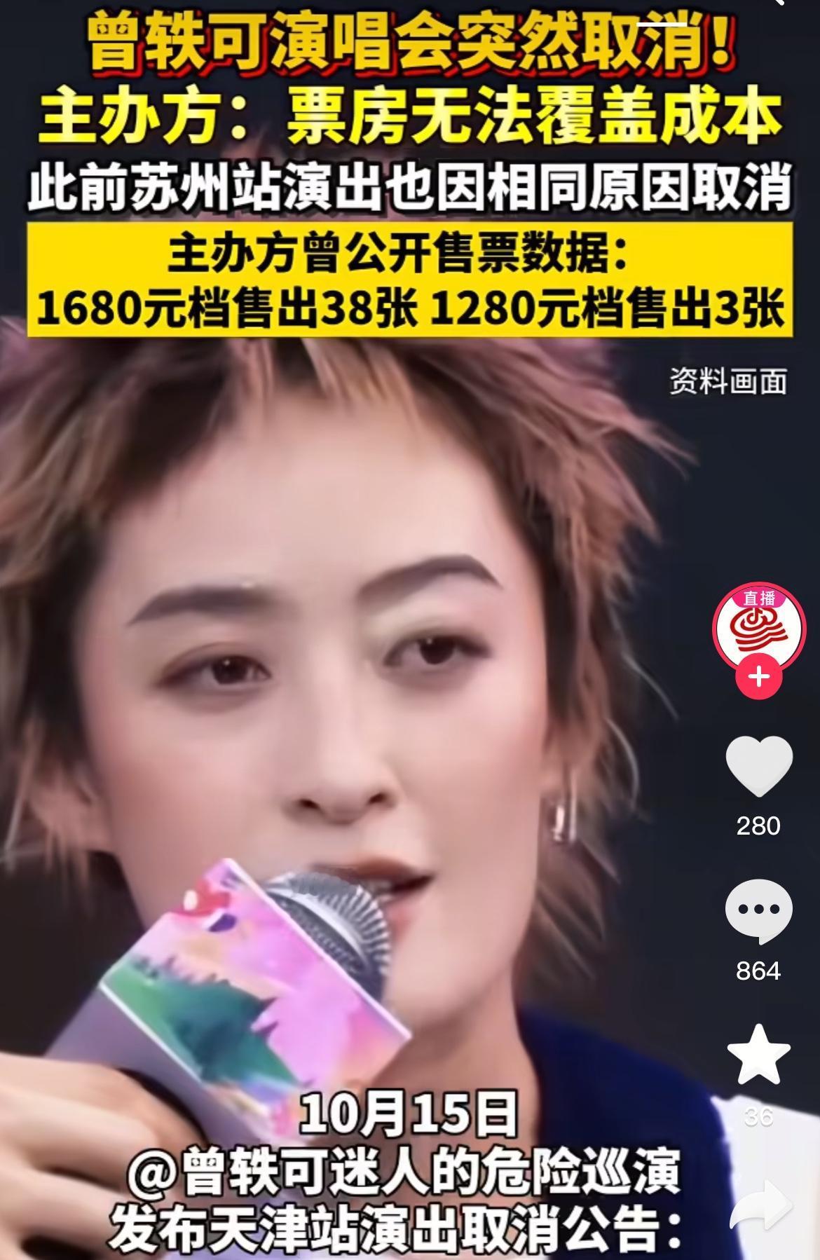 曾轶可到底是怎么火的?这已经是第二次没开起来演唱会了,此前在苏州站因为票房无法覆盖成本导致演唱会临时取消,这次又是同样的原因。 说实话,对于她这种不太知名的歌星来说,1680元的票价偏高了些,如果卖的少肯定是赚不回来的,所以主办方自然不会为她开演唱会。 说起曾轶可,好像只听过《狮子座》,你都知道她的哪首歌曲呢?