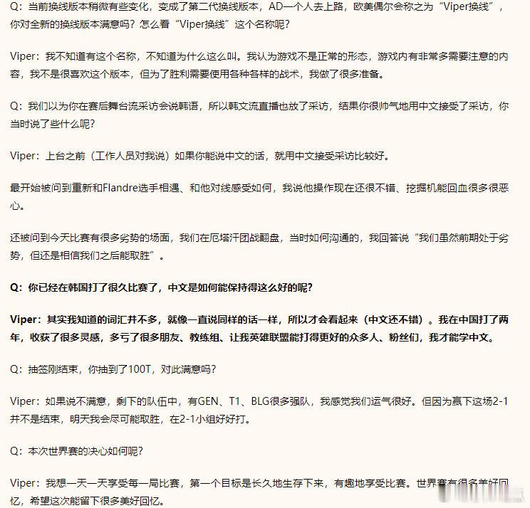 Viper:我不喜欢换线版本,抽100T运气很好,学中文要感谢很多人