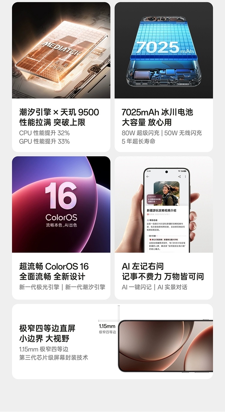 5.其他:ColorOS 16,3D超声波,IP66/68/69防尘防水,红外、NFC、X轴线性马达、立体双扬声器,