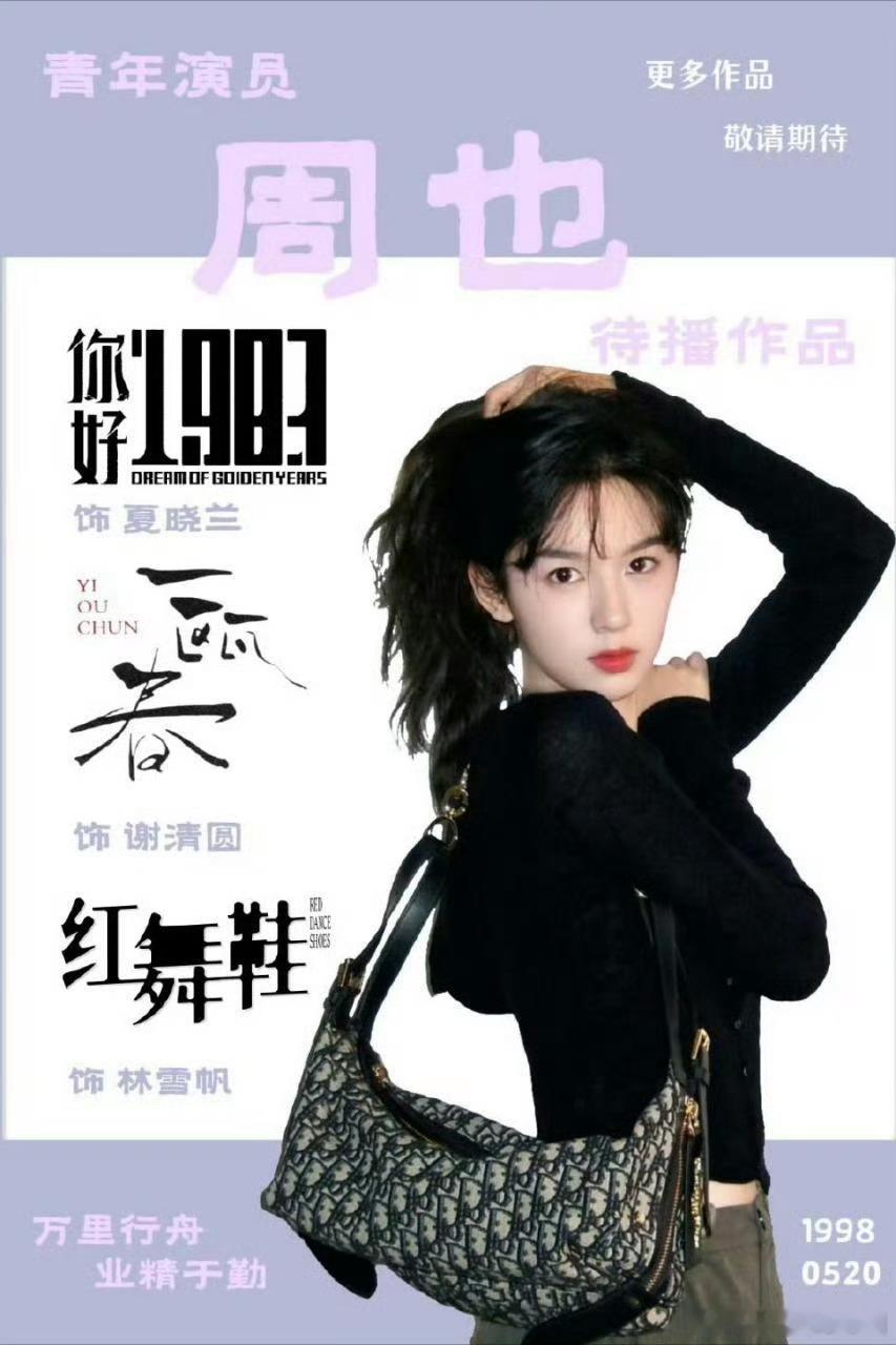 周也是95后女演员待播剧角色热度榜TOP1 待播剧有《你好1983》《红舞鞋》等