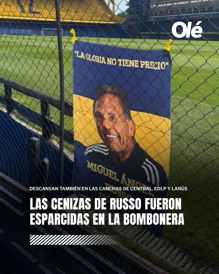 直播吧10月16日讯奥莱报报道,阿根廷名帅米格尔-安赫尔-鲁索的骨灰于本周三被撒在了博卡青年的主场糖果盒球场的草坪上。