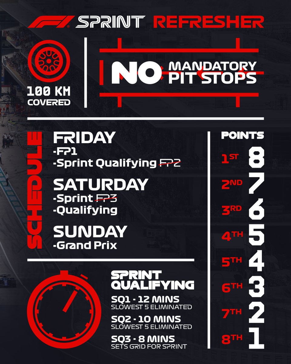 F1官方推特账号报道:#F1短程冲刺赛重磅回归!本周末将迎来高积分争夺战#F1#USGP