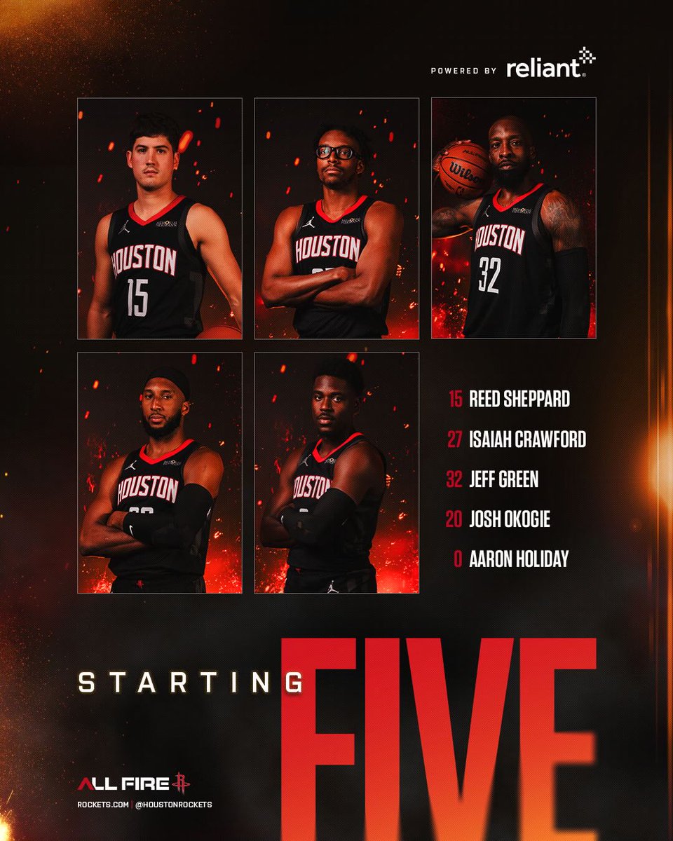 休斯顿火箭官方账号报道。首发阵容公布:@ReliantEnergy