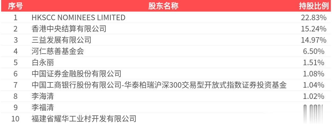 公司股东户数为8.57万户,前十大股东持股数量为17.24亿股,占总股本比例为66.04%,前十大股东持股情况如下: