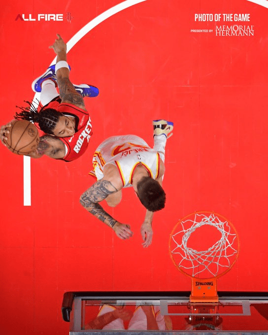 赛后,火箭官方更新动态,晒出JD-戴维森隔扣克鲁伊奇的俯视视角图:“JD在这场比赛中投出了一个精彩的扣篮,再看一遍!”