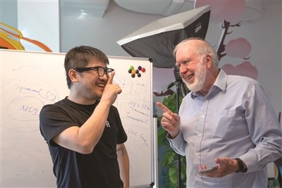 从Rokid的AR眼镜,到每日互动的AI数据算法,再到城市大脑的智慧交通和养老服务,凯文·凯利走访多家科技企业,与创业者深入交流。他好奇技术如何真正改善普通人的生活,对城市智能化管理尤其感兴趣。看到大屏上的老年人分布热力图时,他连连发问:“这能为社区老人带来什么?”当得知能据此及时对老年人需要的基础设施做出增减安排时,他微笑着表示“这就是科技最好的样子。”