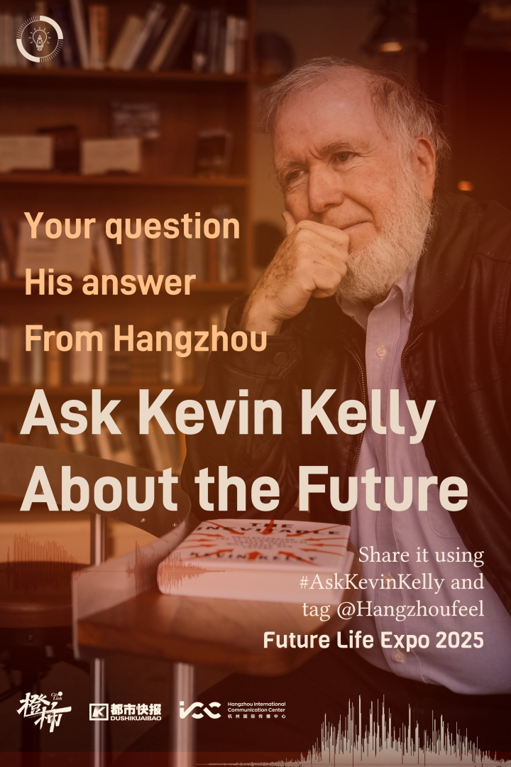 三天前,都市快报、橙柿互动、杭州国际传播中心联合发起#AskKevinKelly特别策划,通过杭州官方海外社交账号Hangzhoufeel在Facebook、X、Instagram等海外社交平台向全球发出邀约——邀请世界各地的网友成为“云端观众”,跨越时空阻隔,在杭州与科技思想家凯文·凯利展开一场关于未来的深度对话。