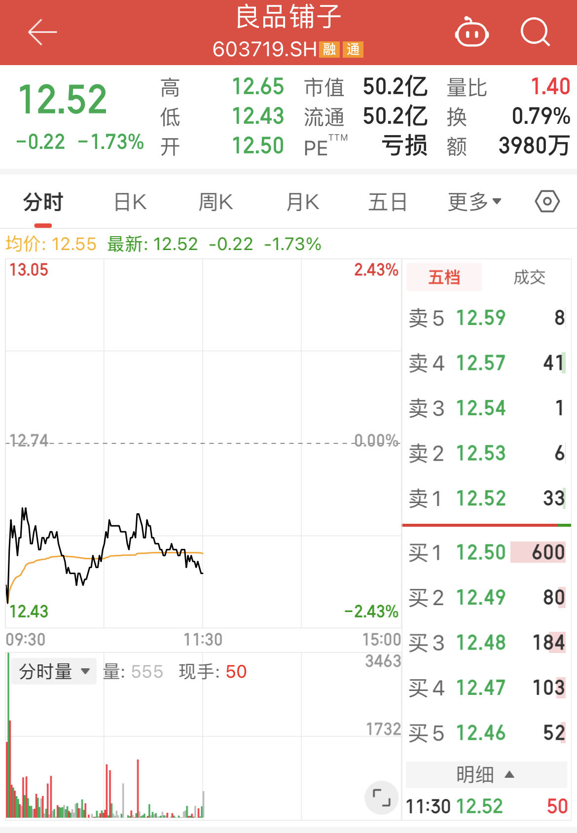 二级市场方面,良品铺子股价在本轮牛市中表现也并不理想,年内股价累计跌幅达8.63%。截至10月17日午盘,良品铺子股价报12.52元/股,日内下跌1.73%,总市值50.2亿元。