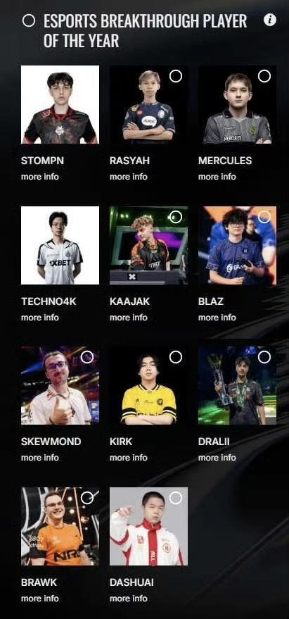 EsportsAwards公布了2025年度各奖项提名,其中王者荣耀项目有关提名如下: