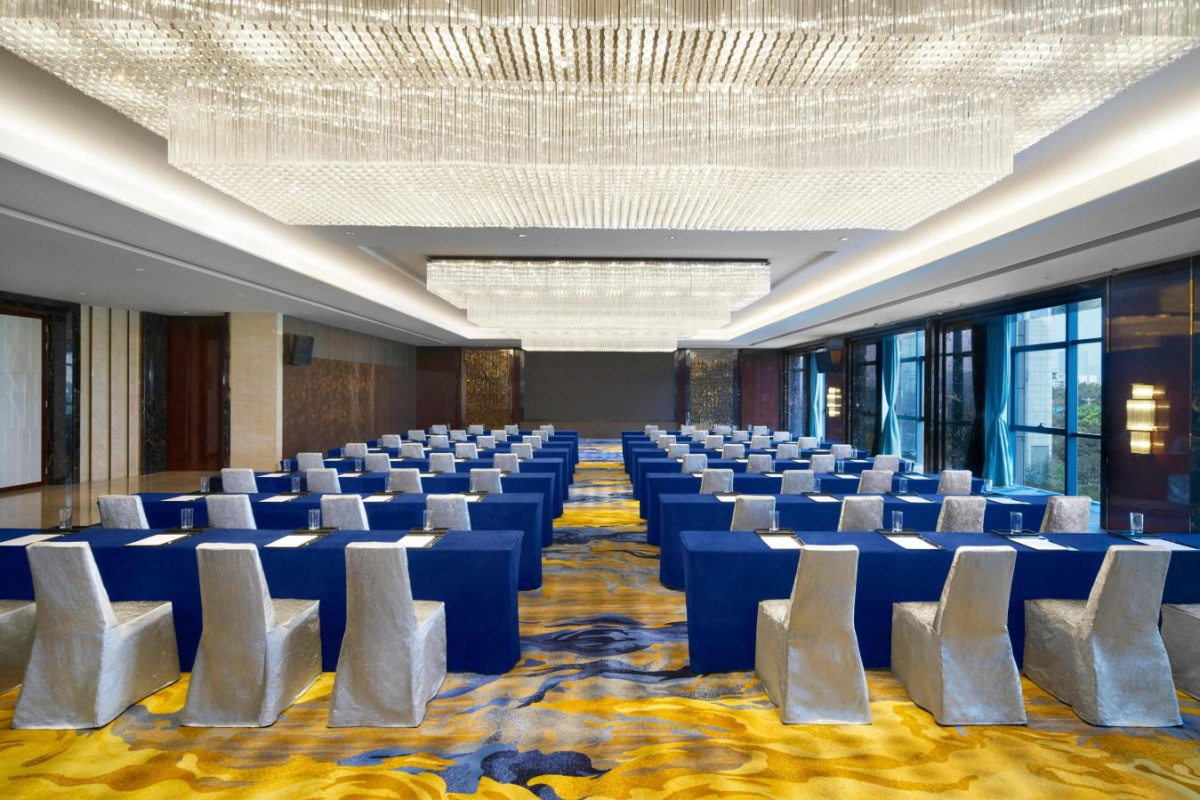 ※特色场景:色彩斑斓浓郁的特色奢华宴会厅:美盛厅、嵩山厅、中原大宴会厅,玩转豪门婚礼、商业晚宴、大型派对等多种情境;装修典雅、兼具商务与休憩属性的超大总统套房;蓝调天幕下暗流涌动的户外花园,浪漫邂逅在此上演。