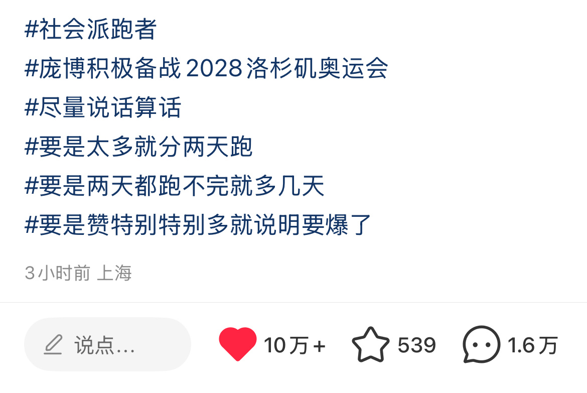 庞博一个赞跑一米 庞博积极备战2028洛杉矶奥运会