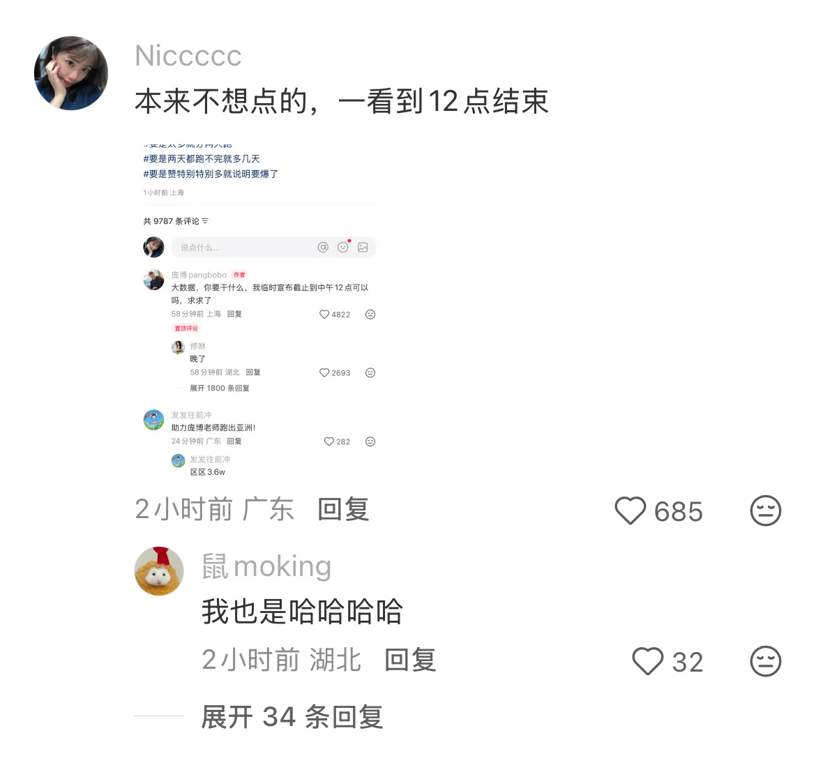 我要笑死了啊啊啊啊所有人都在添乱庞博:一个赞跑一米 到晚上24点三个小时过后:1