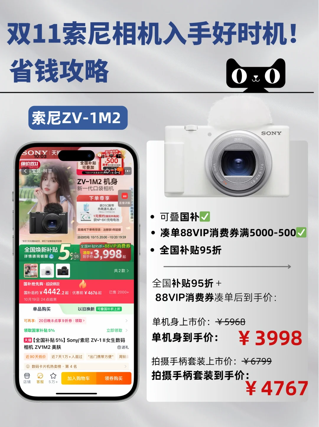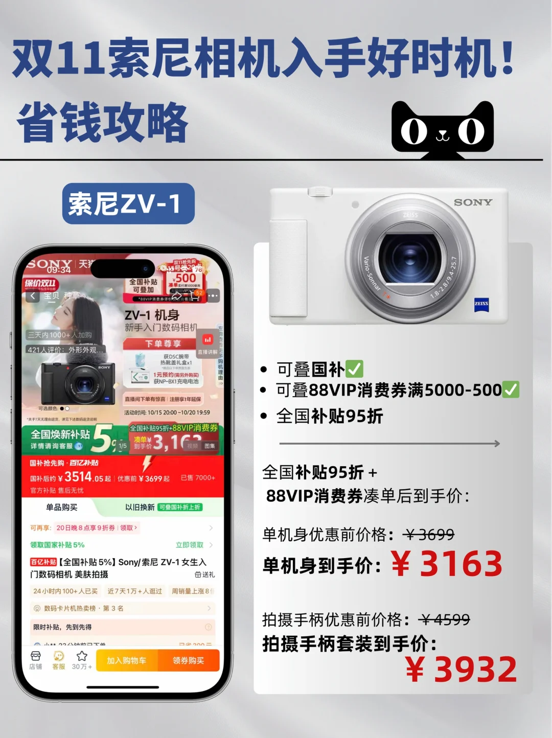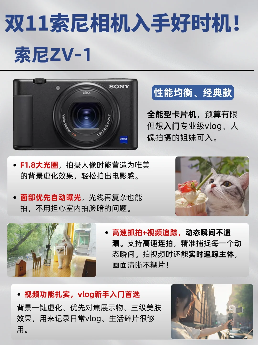 又到一年一度双十一了,想入索尼卡片机的宝可要抓住机会了,今天给大家整理了索尼明星款卡片机ZV—1 一代和二代的选购攻略和双11优惠,买对不买贵!