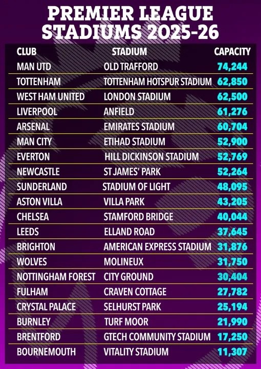 最显著的变化发生在富勒姆,他们耗资1亿英镑、史诗级的河滨看台终于在五月全面开放,内含专属游泳池、米其林星级厨师坐镇,并可饱览泰晤士河美景。该项目历时六年,疫情期间的延误和建筑承包商的破产更是雪上加霜。这意味着克拉文农场球场的容量从2024年8月的24500人跃升至2025年8月的27782人。