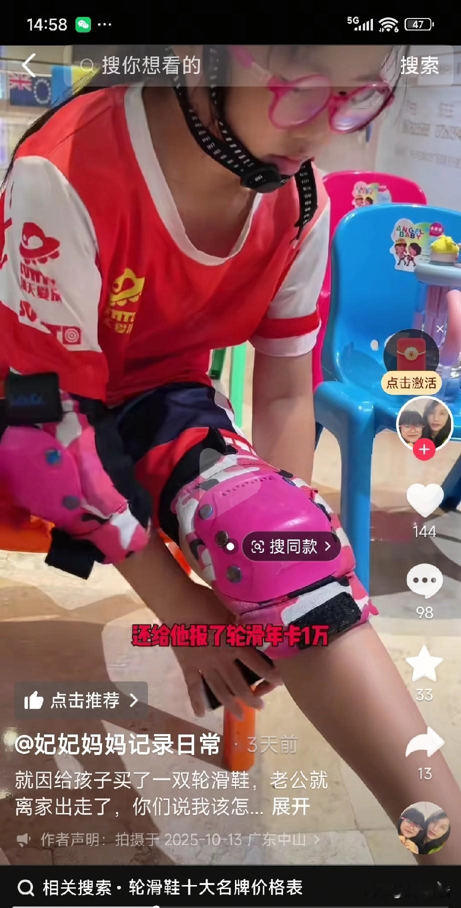 心真大?女子把老公1.4万失业赔偿金,给大宝报了轮滑课,还买了3700的鞋,就剩下300元!老公回来问钱呢?她说给女儿花了? 也难怪男人火大,这不是败家,是啥! 女子全职在家,家里条件也不好,怀里抱着一个娃,手里还牵着一个娃,做饭都是背着二宝来做! 她给自己打造的是,“贤妻良母”的人设,每天带娃,做饭,收拾家务,好像挺伟大, 殊不知男人挣钱也不容易啊?1.4万是男人2个月的工资,她却一股脑花在无关痛痒的轮滑上,任谁不生气, 凡事不得量力而行?商量都不商量,就花这么多钱?老公工作现在都没原先的好,原先挣7000一个月,还要养一大家子吃喝? 什么不得精打细算? 这么大手大脚,挣多少够花?