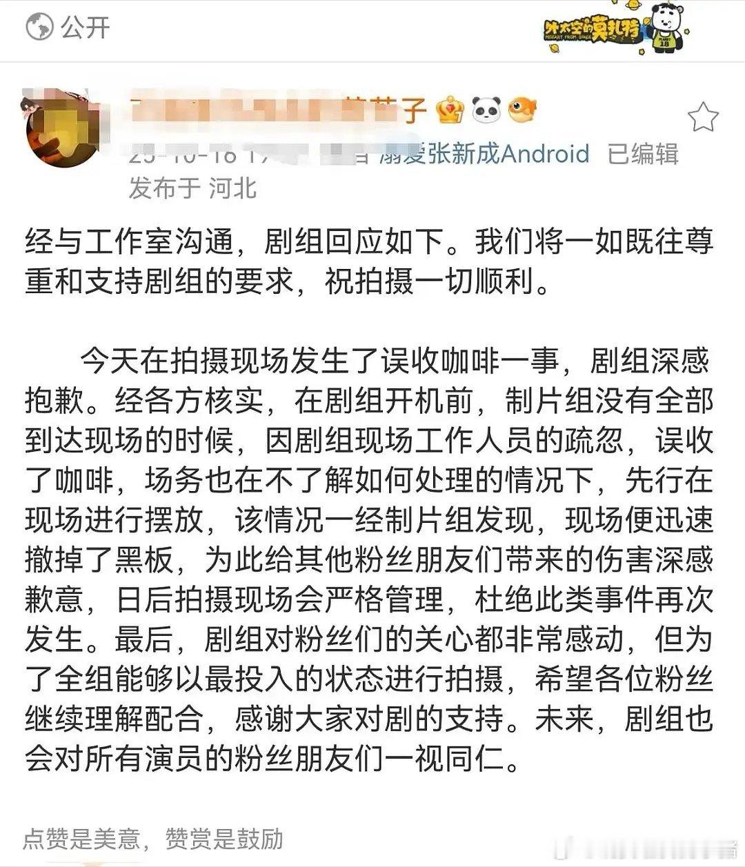陈晓对接回应:近期张新成粉丝说给《秦谜》剧组“送温暖”违规应援的问题。陈晓方表示