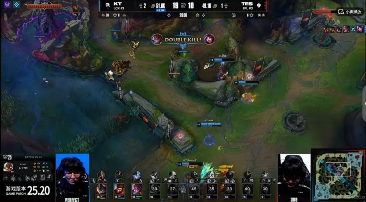 [20:28]厄塔汗团,369安蓓萨TP落地被动手,TES中辅配合进场但是PerfecT兰博大招AOE+金身火烤拉满输出,不过Peter泰坦钩墙也送了!KT打出1换2,Deokdam库奇拦住了Kanavi皇子,KT拿下厄塔汗!