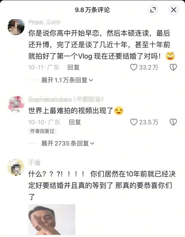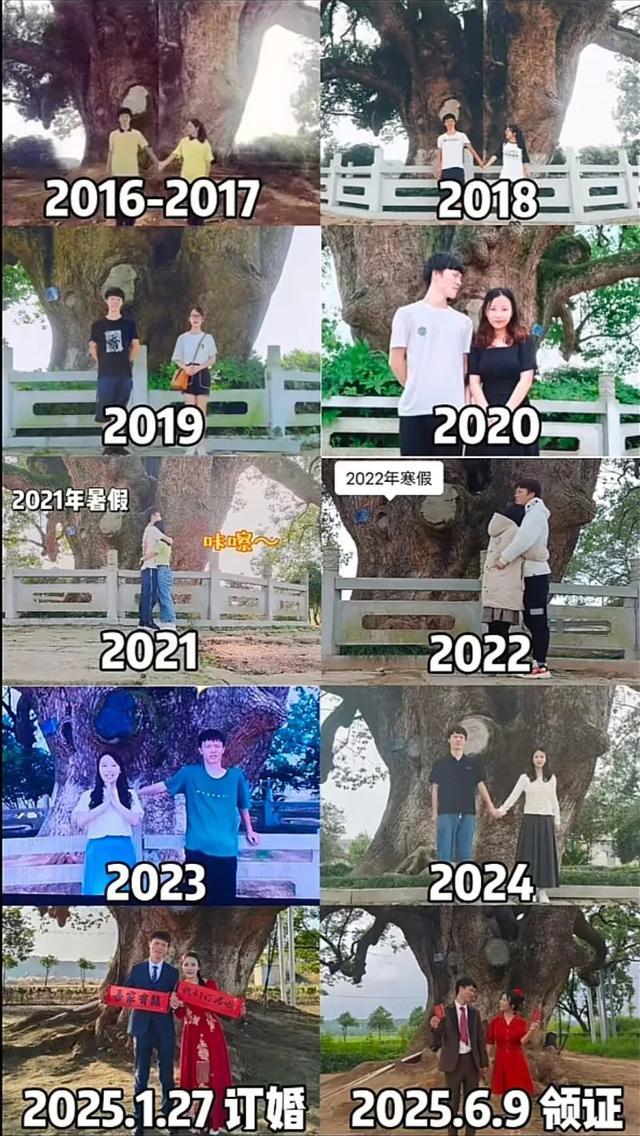 值得一提的是,10月12日,这段视频获得了“中国青年报”的转发,并配文:“难得夫妻是少年!一对情侣相恋9年以来,几乎每年都在家乡千年古树下许下结婚约定,在经历多年异地恋以及辛苦北漂后,有情人终成眷属。”