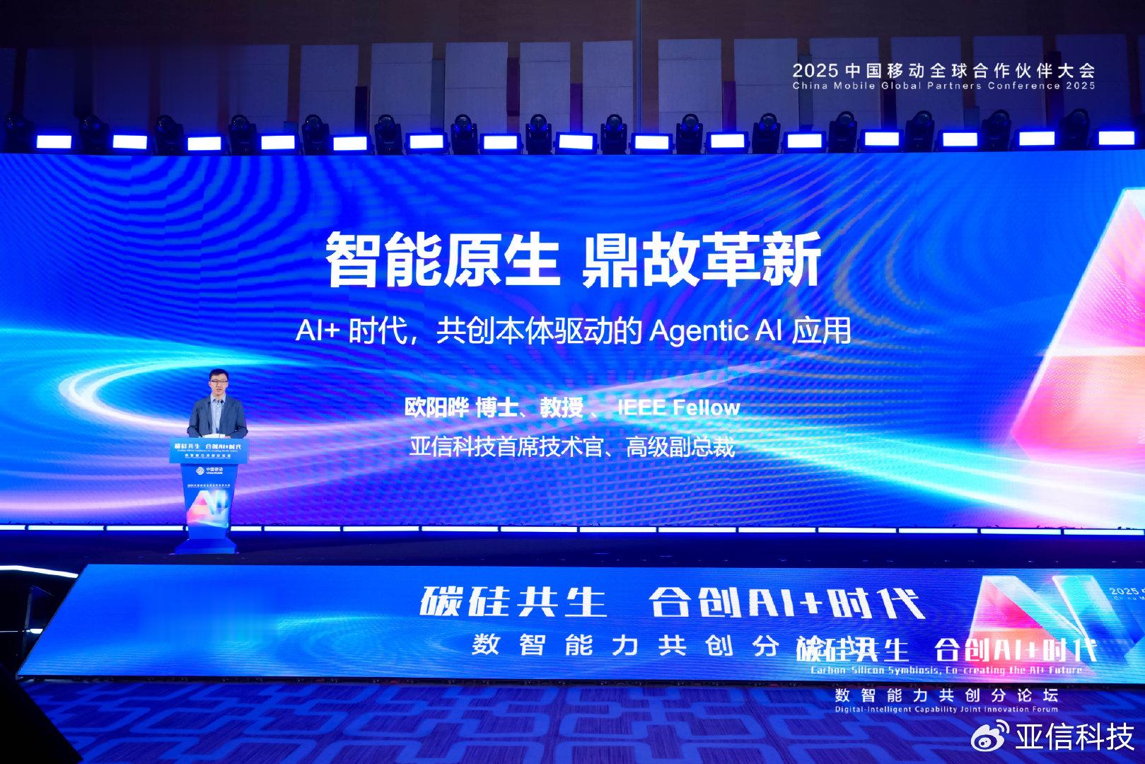 亚信科技首席技术官、高级副总裁、IEEEFellow欧阳晔博士发表了《AI+时代,共创本体驱动的AgenticAI应用》主题演讲。他表示,亚信科技将与中国移动依托能力中台建设成果,以“软件AINative化、数据本体化、应用智能体化”为核心路径,共创“本体驱动的AgenticAI应用”新范式,共筑“碳硅共生”新生态,为行业数智化转型注入更强劲的动力。