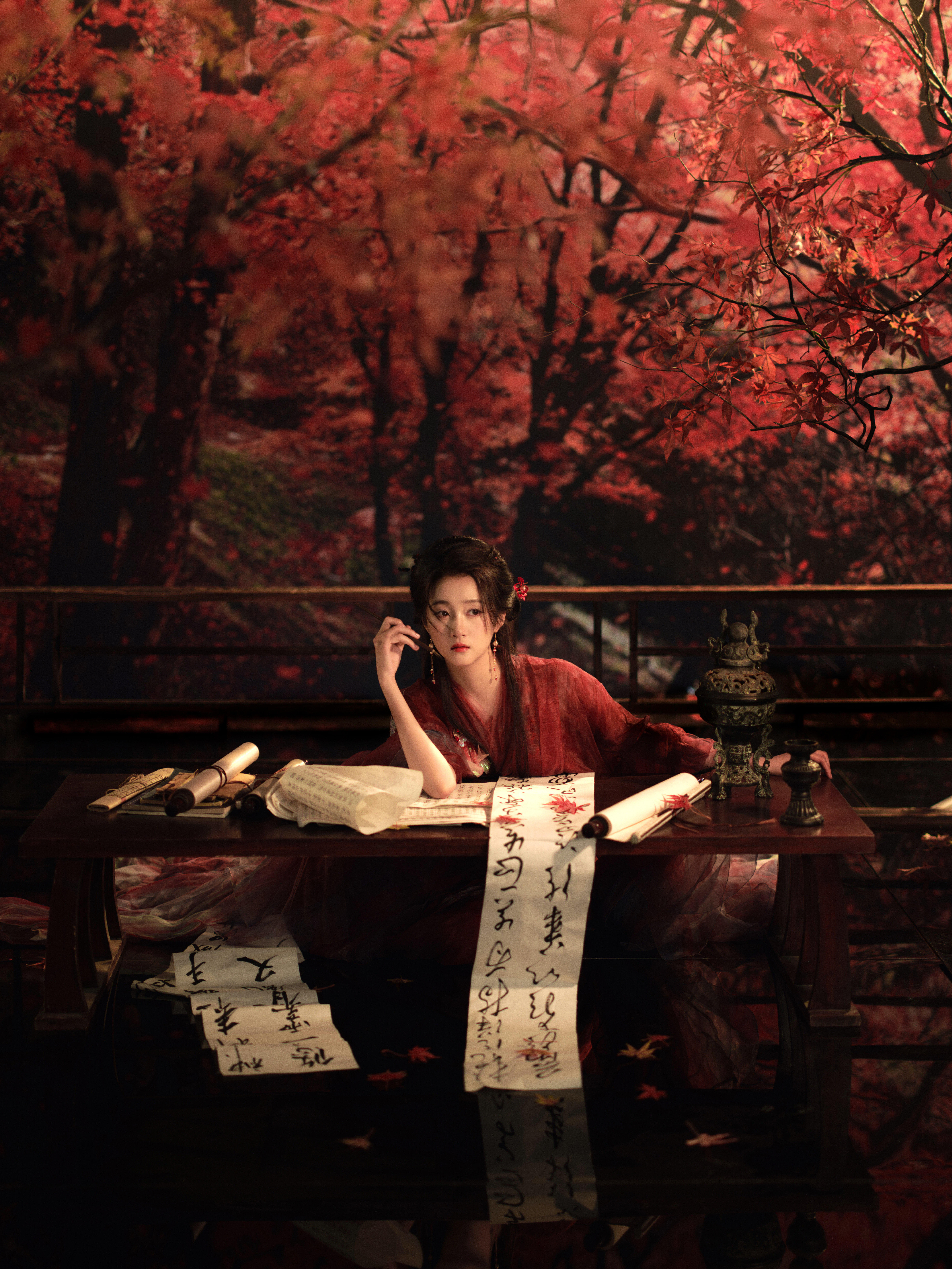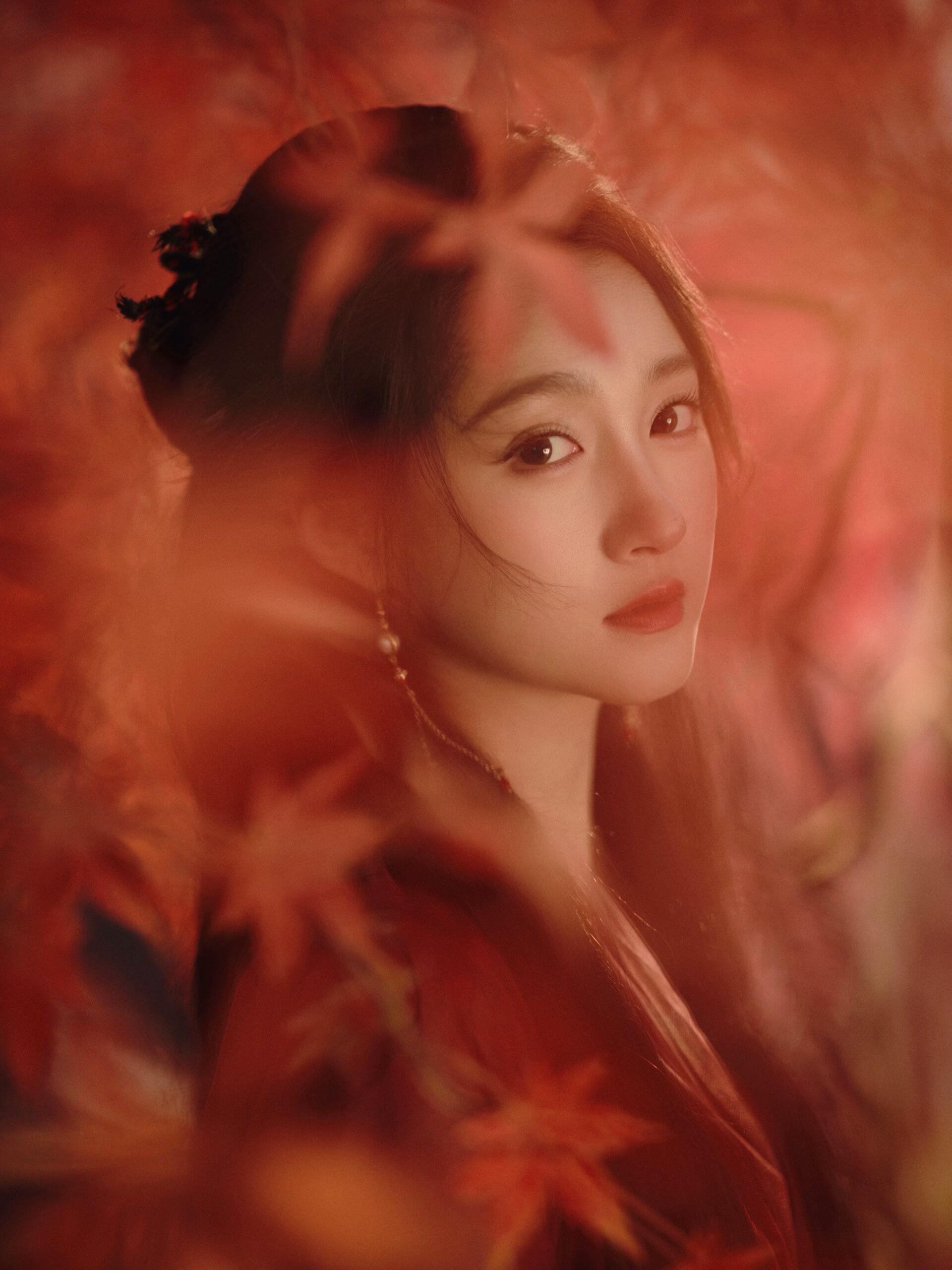 红枫下的关晓彤 关晓彤红纱古风照