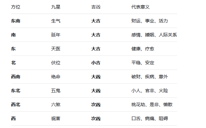 第四步:对照八宅游年图,确定吉凶位