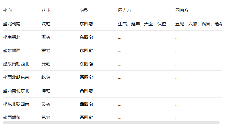 第二步:根据坐向,归类到“东四宅”或“西四宅”