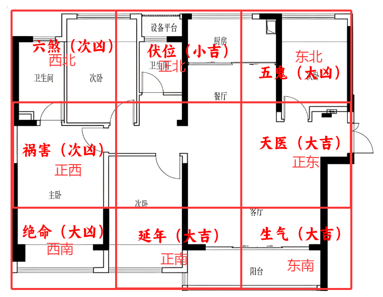 至此,你已经得到了你家各个方位的吉凶属性地图。