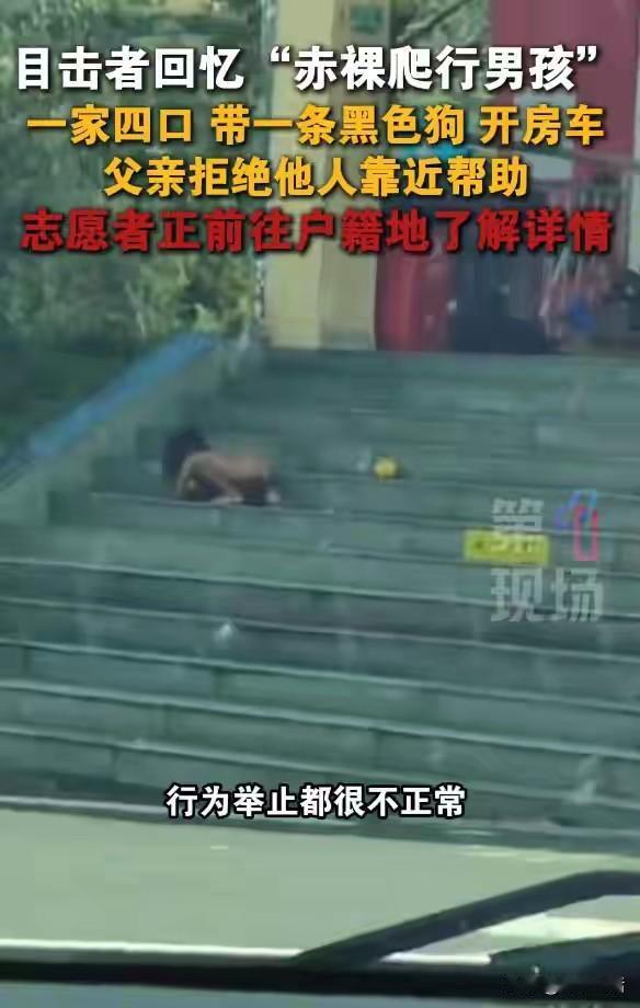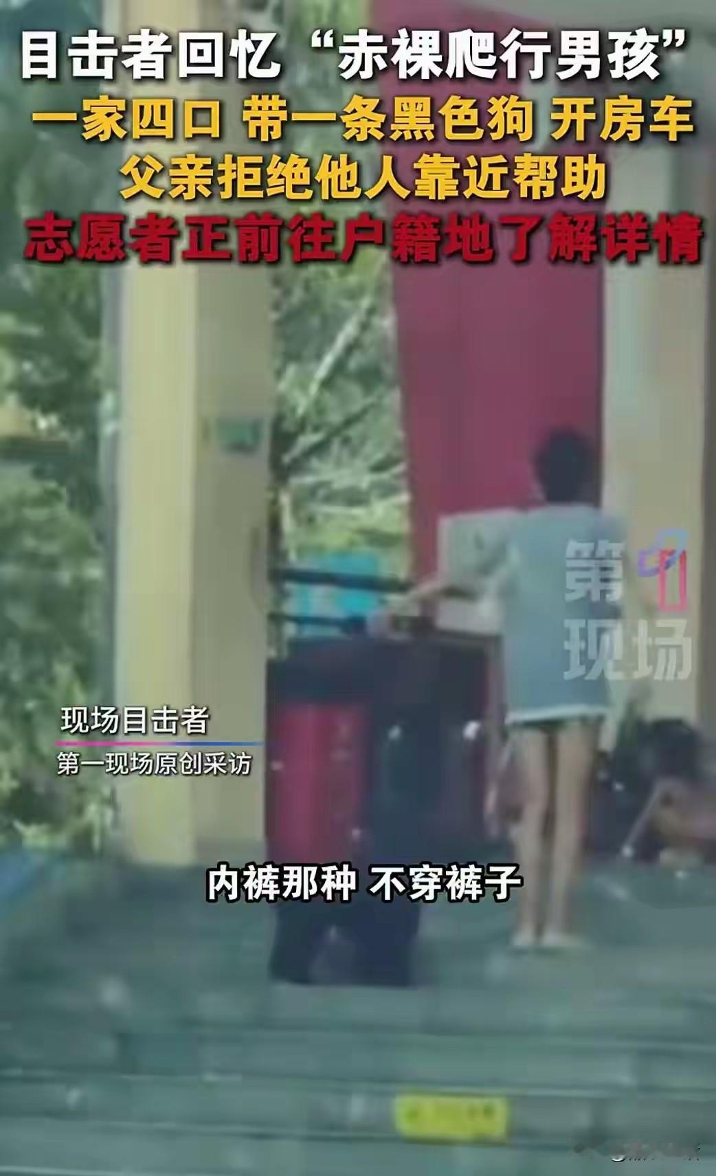 既然崇尚“自然散养”,4岁大儿子赤身爬行,母亲只穿内裤,挥舞着胳膊的爸爸,怎么穿着长裤?小儿子那么小,也穿着衣服,这是什么“双标”操作? 村民说,这父母条件挺好,开房车到处旅游,平时不出去时就住山上,崇尚“自然散养”! 大儿子就是“典型”例子, 4-5岁的年纪,根本不与人沟通,赤身爬来爬去,难怪让人们觉得他像“犬类”, 母亲只穿上衣,下身只有内裤, 倒是父亲和小儿子,“正/常”一点! 但是看到,有人试图给孩子食物,父亲立马出来制止,并挥动着胳膊,明确表示,“不需要”! 不知道是进步还是倒退?不与人沟通,“兽言兽语”,跳跃行走,就是自然? 不太理解,据说父母二人还都是大学生,这脑回路,清奇!