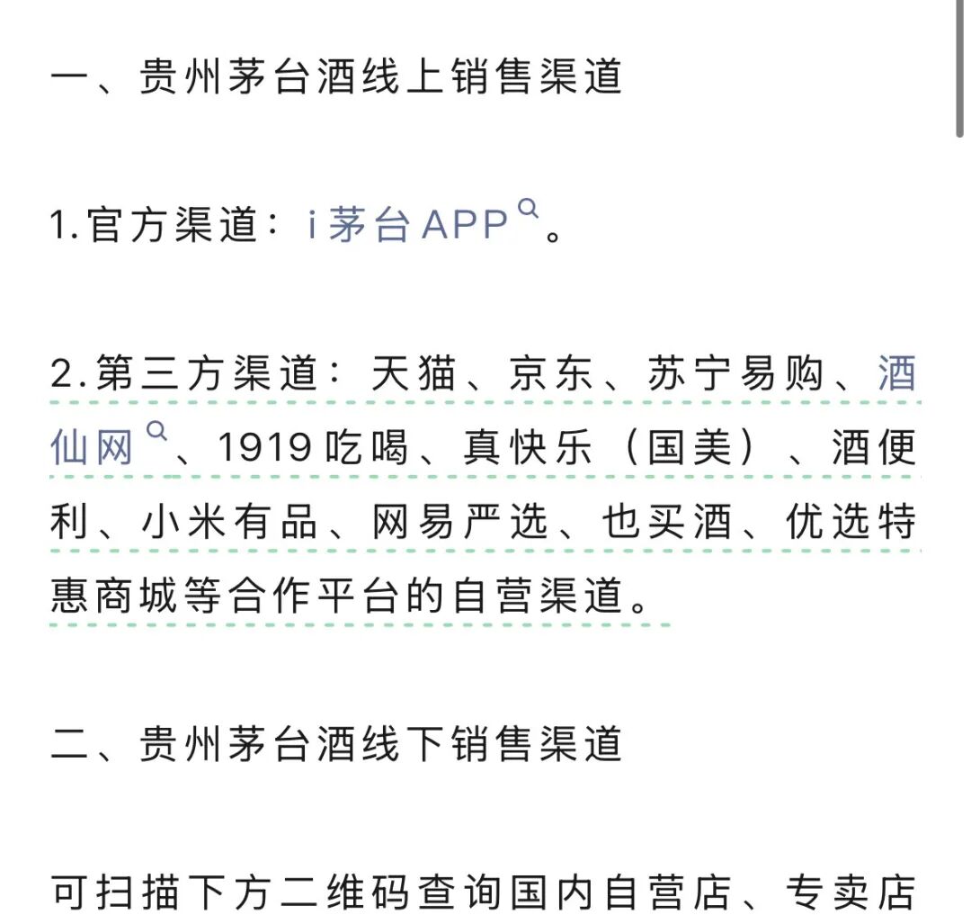 10月14日,贵州茅台通过官方微信公众号发布渠道提示,提醒消费者选择官方、正规渠道购酒。记者注意到,贵州茅台将天猫、京东、苏宁易购等十余家合作平台的自营渠道确认为正规购买途径,但拼多多、淘宝、美团三个主流平台不包括在内。