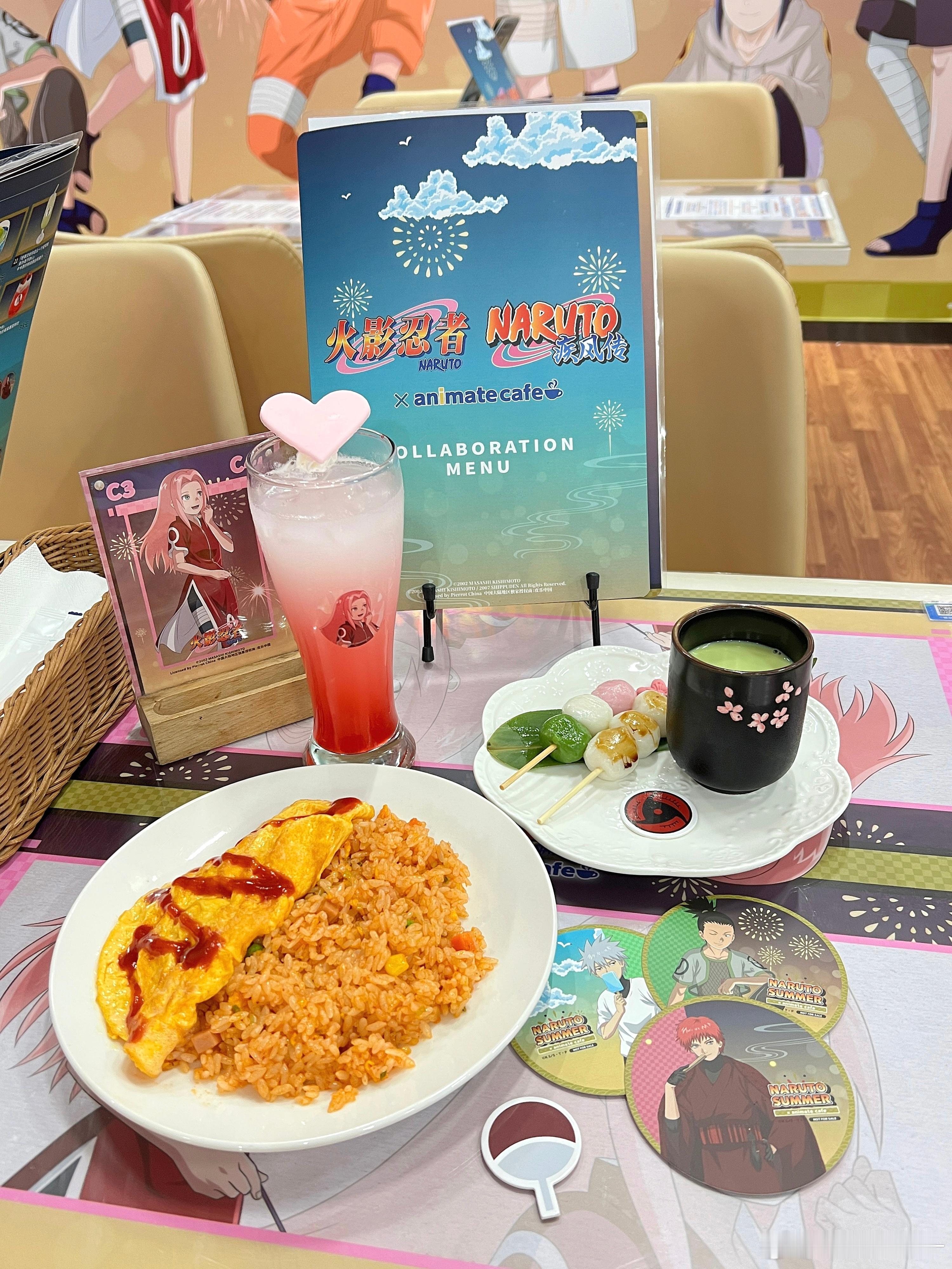 NARUTO × animate cafe去了饭好难吃,谷子好丑随机的杯垫没有一