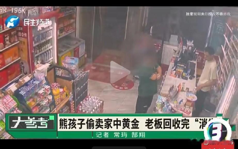 10岁熊孩子偷了奶奶12.98克金吊坠,只卖4200元,2300买手机,1900买零食花光了!几天后,奶奶才发现, 她说孙子,想买手机,从抽屉里随手,翻出自己的金吊坠,拿去便利店卖,好几家店都觉得,物品贵重,没敢收, 只有这家便利店女子,问了几遍,家长知道不?孩子点头! 她就联系了回收的人,具体收没收,她说不知道?这个肯定不可信,中间人有“回扣”,才肯帮着联系的! 回收黄金的“老/板”,近13克黄金,13000元,只给了小孩4300元,便宜收完,就“消失了”,记者电话打去,没人接! 三方都有责任! 奶奶说自己有退休金,不缺钱,白金,黄金随便放,对小孙子“惯得很”,才让孩子为了买新手机,敢“拿”,值钱的东西出来卖了换钱! 便利店女子,明知道小孩,拿着1万多的,金饰,却仍然帮着联系“下家”,明显想着挣中间费! 黄金回收“老/板”,多挣了孩子8000多就想着,电话不接,“跑路”了,估计也行不通! 后续,还看能不能全额找回吧?