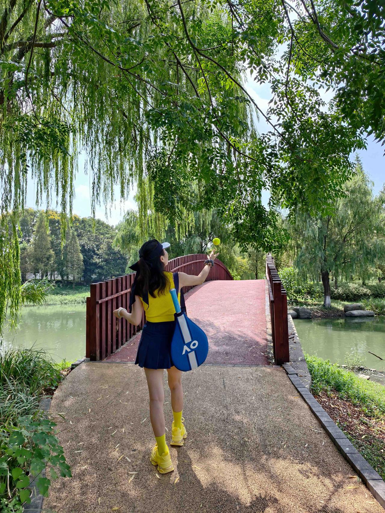去湖州国际红土网球中心🎾,观看WTA125🧍‍♀️决赛,还没到球场就被附近青山绿水的西山漾湿地公园拿捏了。 沿着长长的环漾步道漫步🚶,在阳光☀️下挥拍,感受初秋🍂的风吹过,湖光山色间,黑天鹅和我们打招呼.. 推荐一条西山漾落日漫步给来湖州国际红土中心观赛或打球的朋友👫们: 西山漾边漫步 →参观钱山漾文化交流中心 → 在丝绸小镇逛店、喝下午茶 → 鸽子🕊️广场休息 → 日落🌅时分欣赏漾景后离开。 湖州,我选择用网球拍丈量这座城市的心跳… OOTD AO澳网白色外套🧥 AO澳网黄色网球🎾背心🎽 AO澳网蓝色网球裙 AO澳网蓝色网球包及考拉🐨挂件