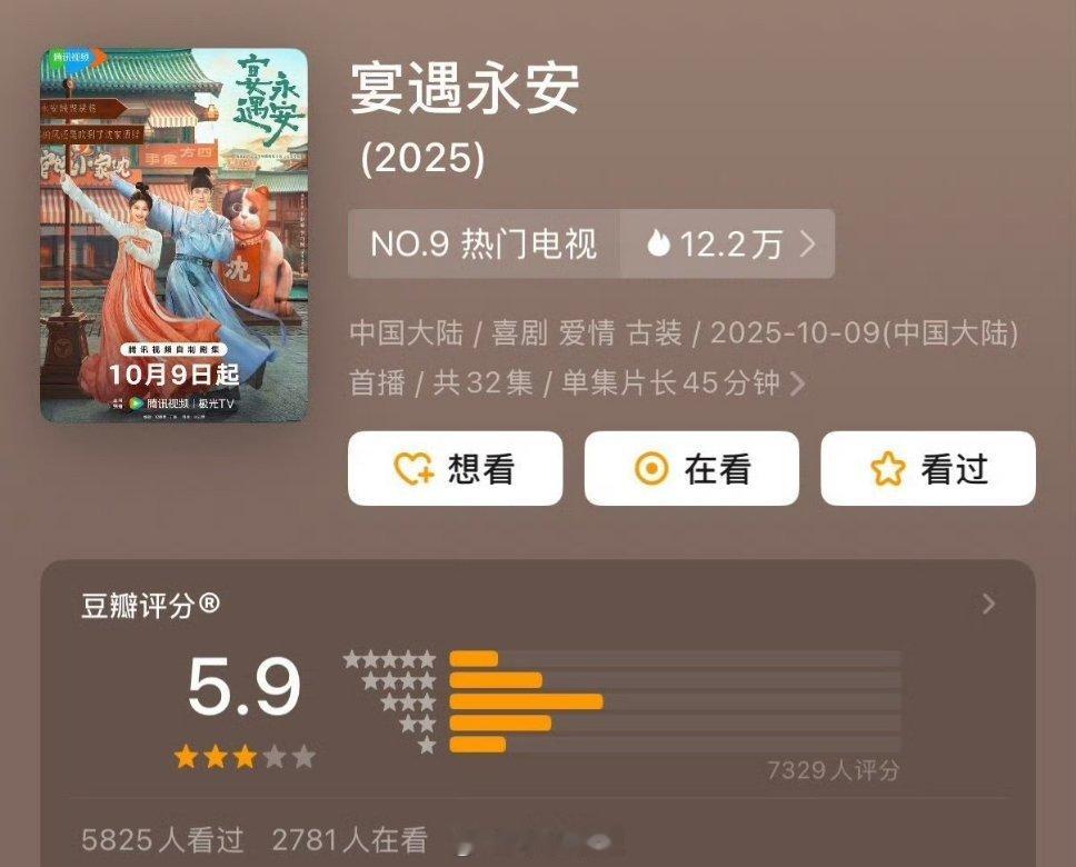 李沁陈哲远一笑随歌豆瓣开分6.5分王影璐李昀锐平番宴遇永安豆瓣开分5.9分你们觉