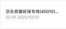 挂了电话后,大概有接近三分钟吧,时间来到了下午6点21分,给我打电话的还是京东客服,而不是京东延保客服。