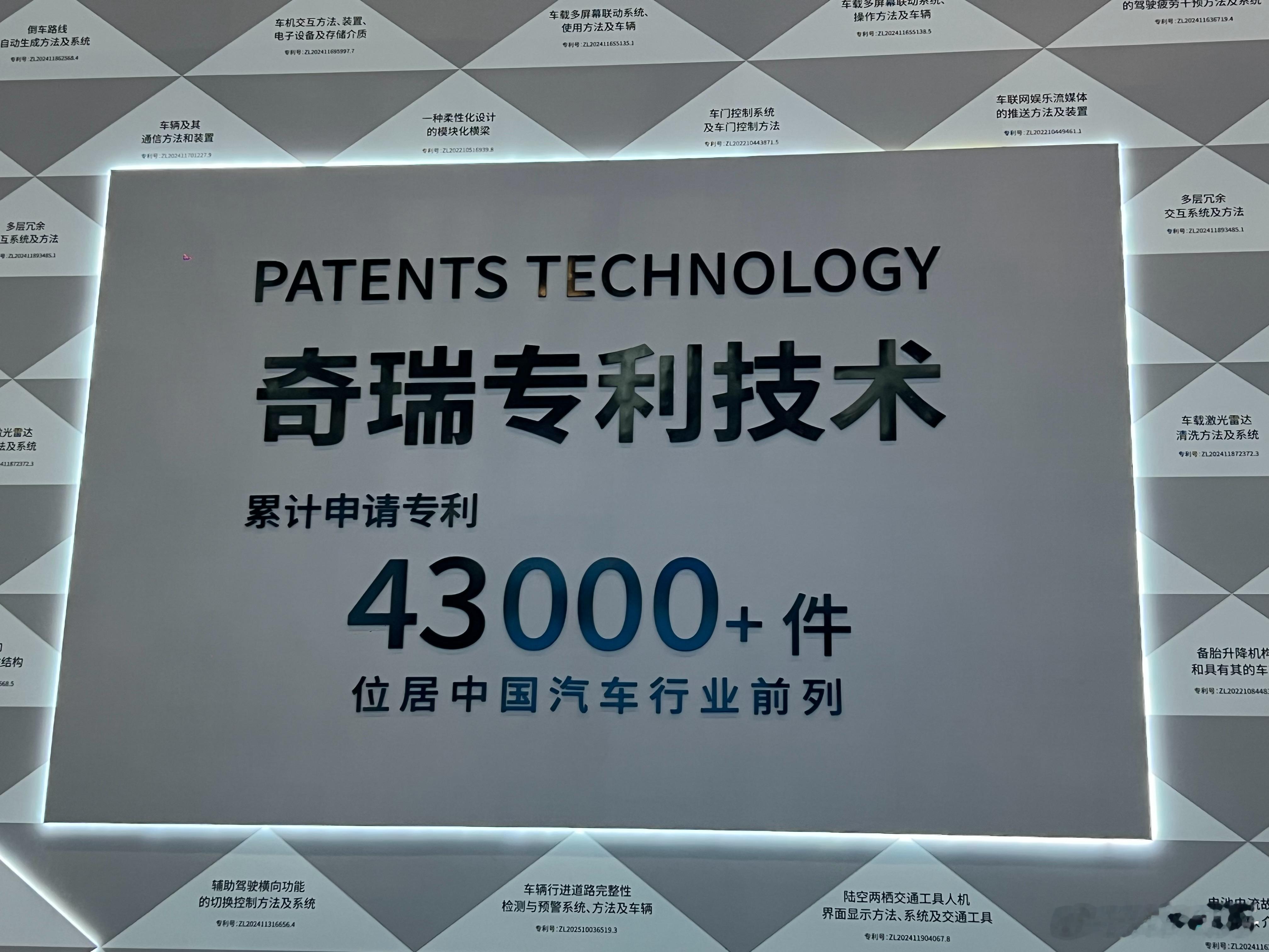 2025奇瑞全球创新大会 整个会场最显眼、最排面的一面墙,这是奇瑞30年的积累,申请了超过43000件专利!